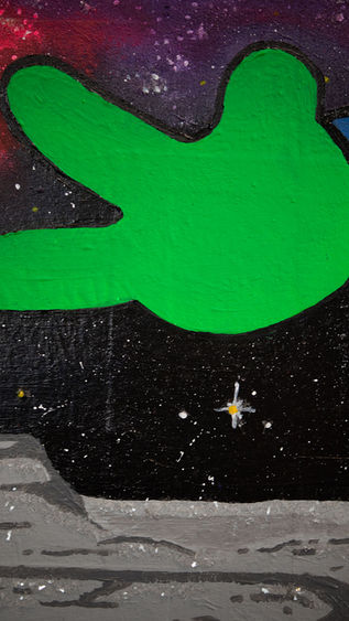 A solitary figure stands on the moon, separated from the comfort of the collective. No longer defined by sameness, it becomes an individual, seemingly chosen for a path beyond the familiar, and into the unknown.